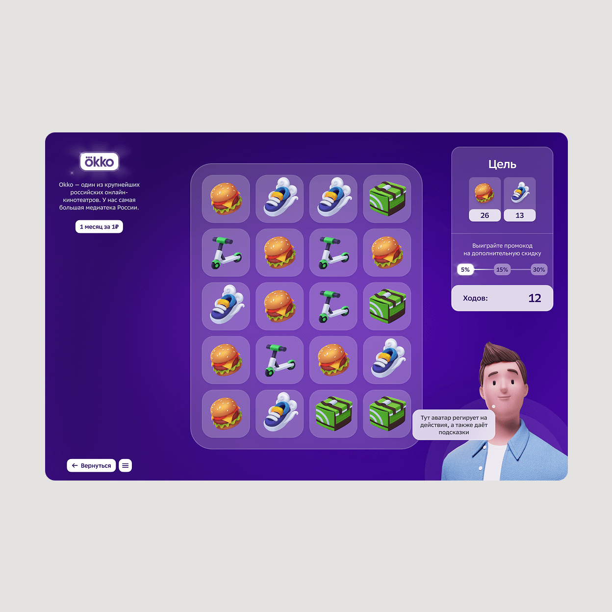We developed the concept of a game that introduces users to Sber ecosystem products and encourages the use of bonus points, stimulating loyalty and engagement with ecosystem products
